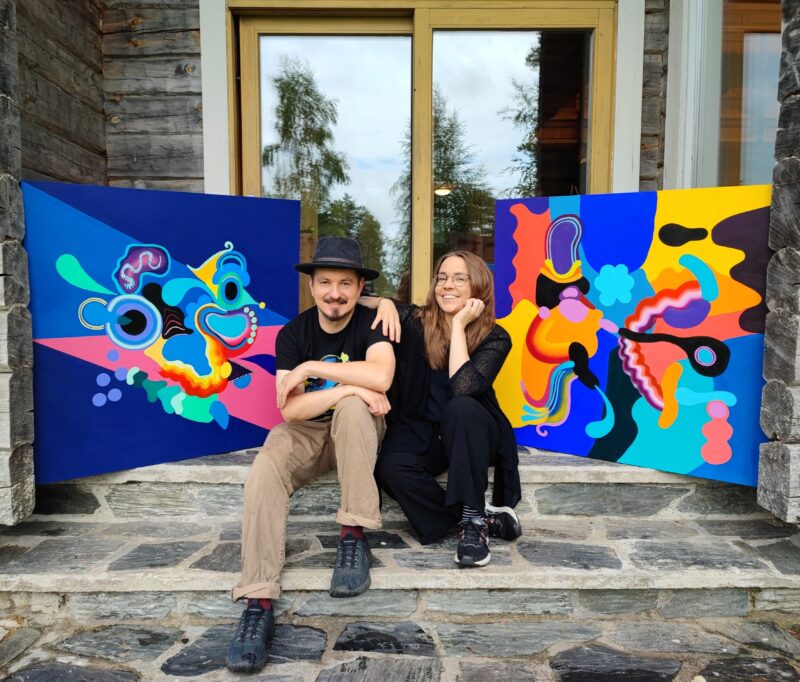 Taiteilijapari toteuttaa värikkäät ja abstraktit teoksensa suunnittelematta, yhtä aikaa samaa maalauspohjaa maalaten ja toistensa maalausjälkeä jatkaen. Teosten syntyyn vaikuttavat taustalla soiva musiikki, kahden taiteilijan sanaton dialogi ja sattuma. Heidän yhteistyönsä perustuu improvisaatioon, jossa lähtökohtaisesti sanotaan toisen ehdotukselle kyllä, ja luotetaan prosessiin.